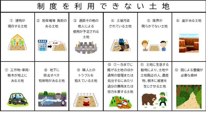 ただし、どのような土地であっても無条件に引取ってもらえるわけではありません。建物がある土地、担保等の権利が設定されている土地や争いのある土地等「一定の却下事由に該当する土地ではないこと」が条件になります。