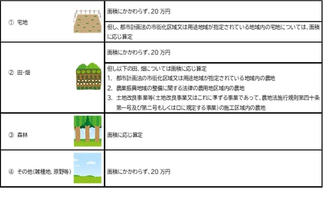 ※市街化区域又は用途地域内の田畑や山林等については面積に応じて算出