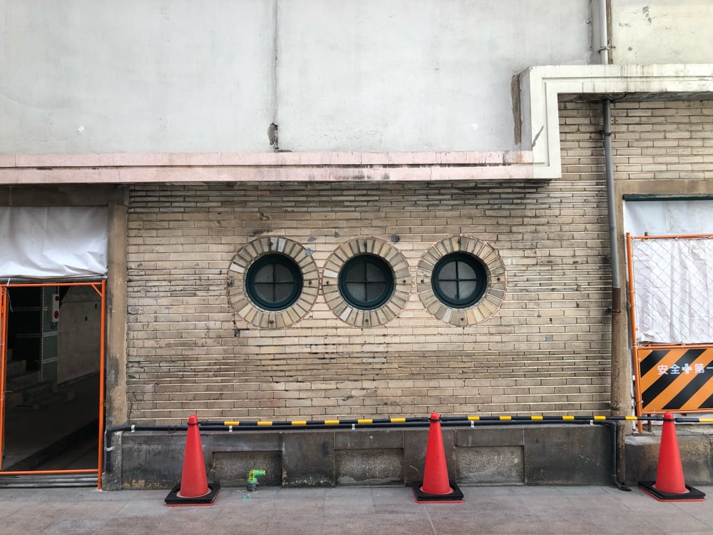 トアロード沿いでは現存する最後の1棟かと思われる近代建築の「河南ビル」です。円窓のイメージを持ってる方も多いのではないでしょうか?
